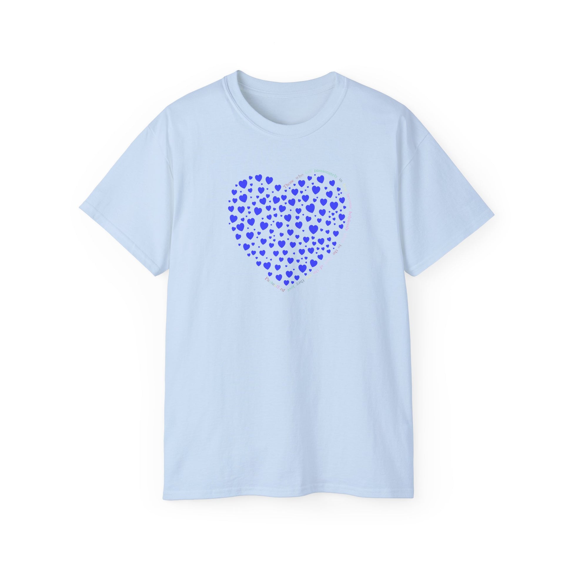 This Blue Hearts T-Shirt is a versatile and comfortable choice for adults looking for a classic and stylish tee. Made with environmentally-friendly cotton, this t-shirt offers a thicker vintage feel, making it suitable for everyday wear. The bigger shirt size provides extra comfort, and the design is perfect for casual and semi-formal occasions.