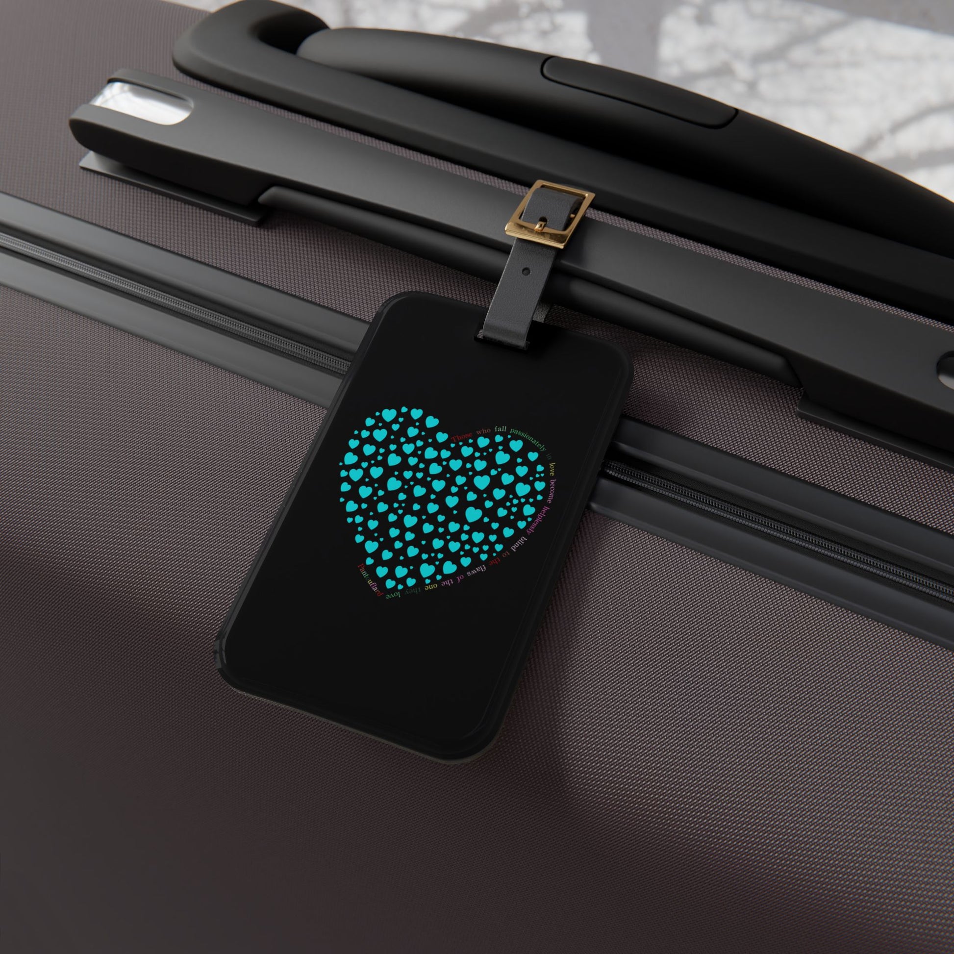Mint Heart Mosaic Luggage Tag, Personalized Travel Accessory, Unique Suitcase Identifier